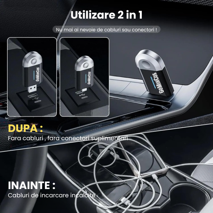 Cu adaptorul GoMinCos, transformi fiecare calatorie intr-o experienta mai simpla, mai sigura si mai conectata. Este solutia ideala pentru soferii care vor sa scape de cabluri si sa modernizeze rapid masina.